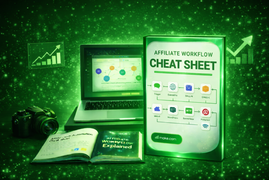 Ein übersichtliches Cheat Sheet, das Einsteigern hilft, automatisierte Affiliate-Workflows Schritt für Schritt zu verstehen und umzusetzen.
